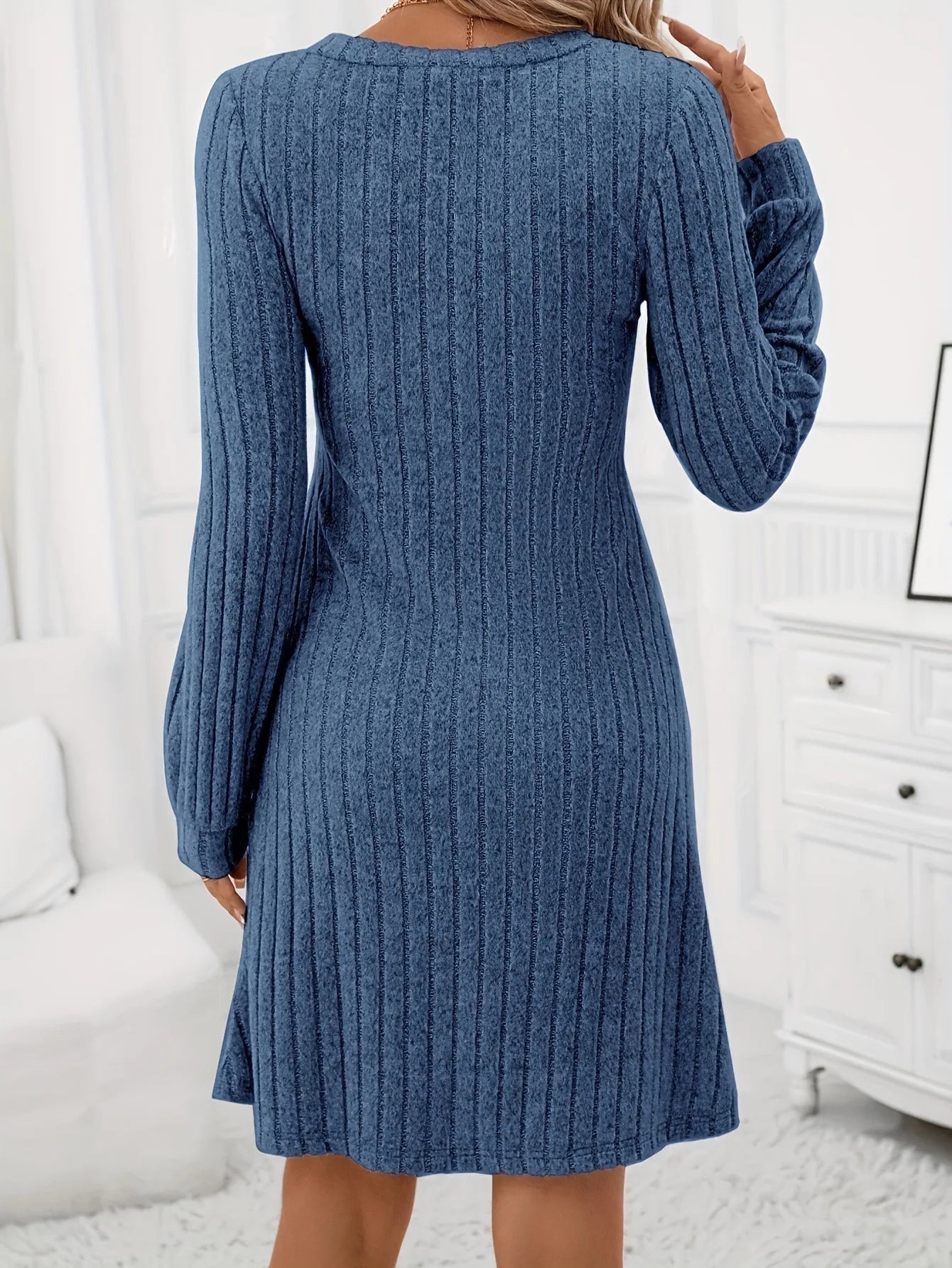 Damska dzianinowa sukienka sweterkowa – ciepła, elastyczna i z długim rękawem